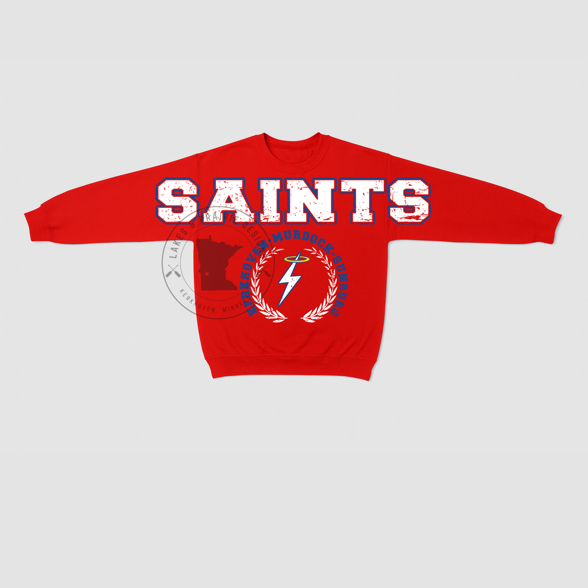 Design will be placed on Red OR Royal Blue Gildan Crewneck Sweatshirts offered in both Youth and Adult sizes.